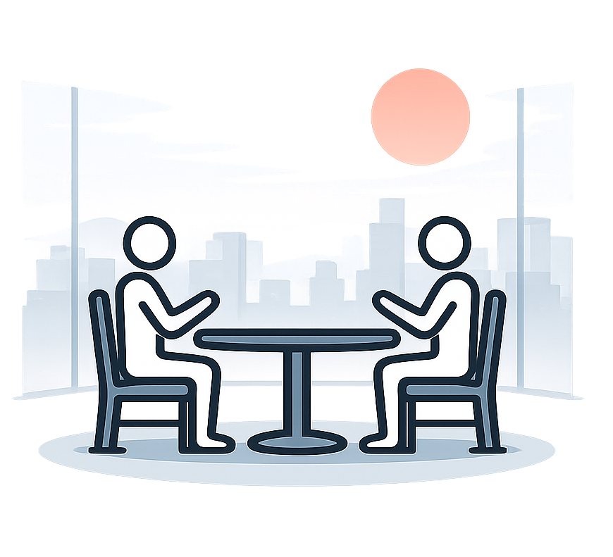 For individual clients, we begin with a chemistry call — a simple, open conversation to understand the coaching process, explore fit, define focus, and decide together how best to move forward.